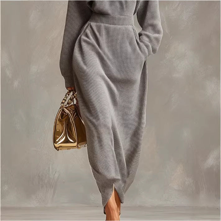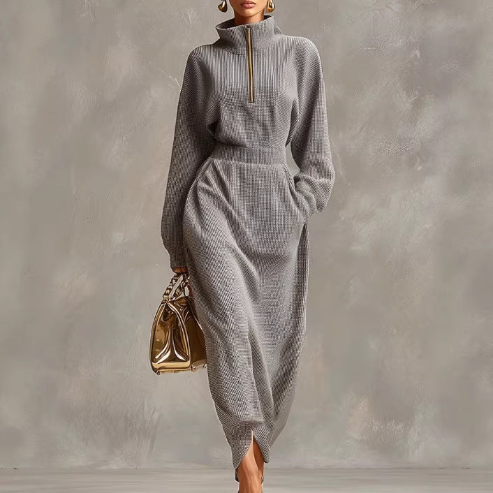 Waffle-Knit Maxi Jurk met Rits en Standkraag