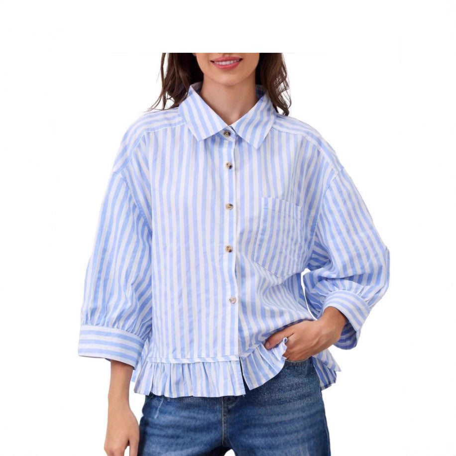 Loszittende Casual Top Met Een Loopsluiting Aan De Voorkant En Driekwart Mouwen