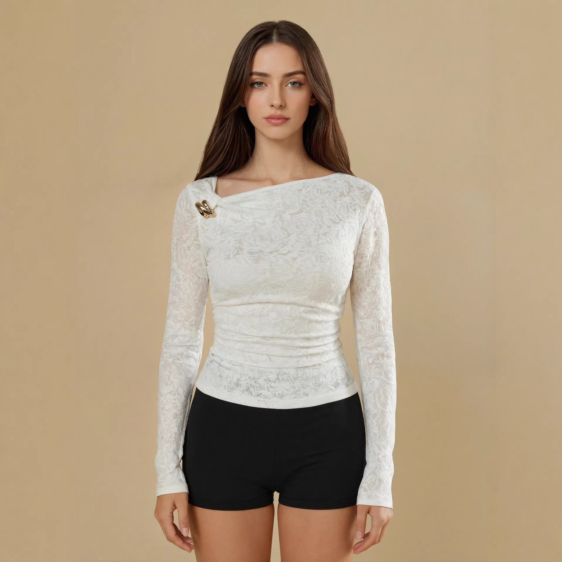 Deze top volgt de natuurlijke lijnen van het lichaam en voelt licht aan op de huid. De slanke pasvorm benadrukt de vrouwelijke silhouet subtiel en het doorzichtige materiaal voegt een speels detail toe. Perfect voor een rustige, toch verfijnde uitstraling.