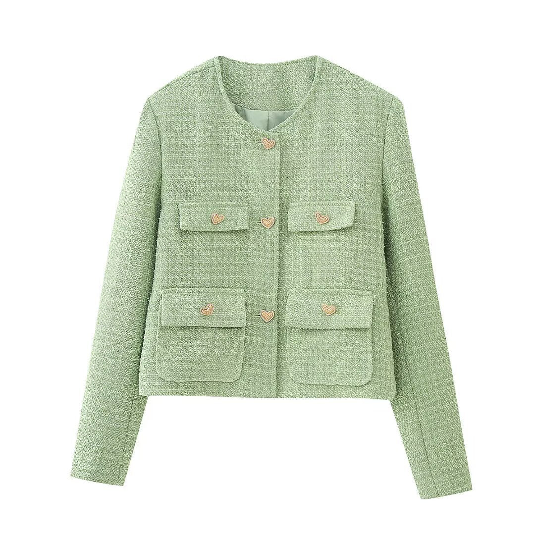 Chic Tweed Jacket & Mini Skirt Set met Hartknopen