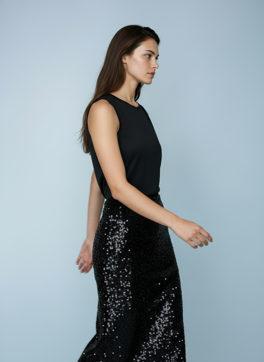 Combineer met een minimalistische blouse voor een ingetogen uitstraling.