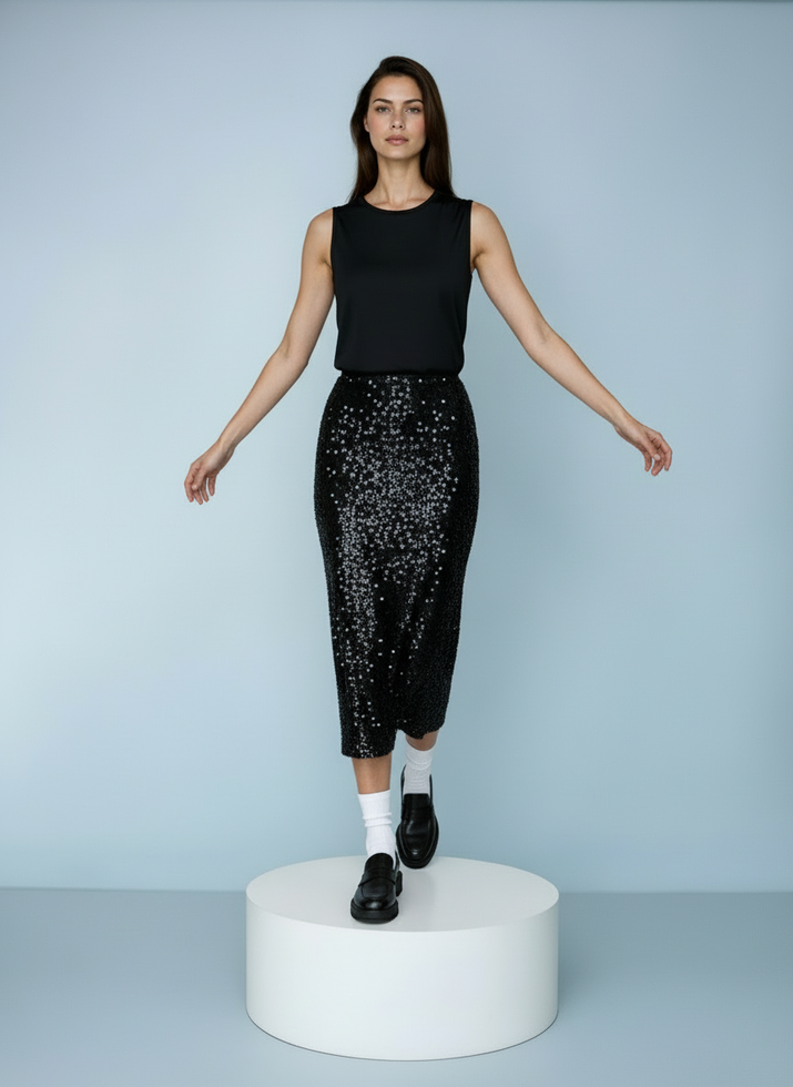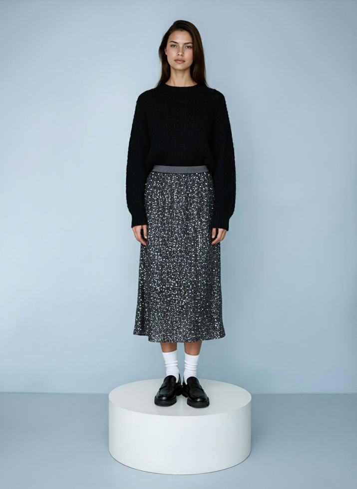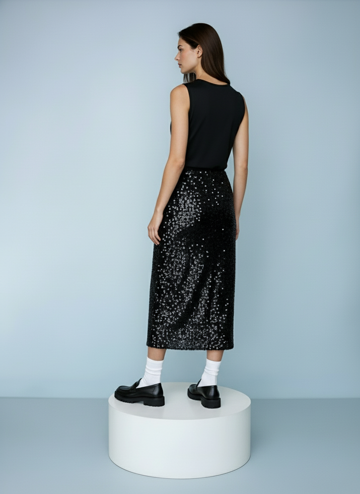 Dankzij de mid-length lengte is deze rok perfect voor diners, feestjes of stijlvolle dagelijkse momenten.